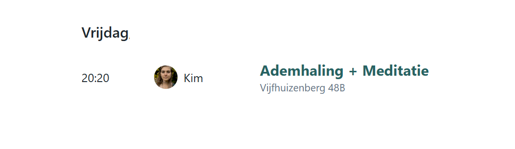 Iedere maand zal er een 30 min Adem + meditatie les plaatsvinden op de vrijdag avond. Dit is een karma yogales, wat betekend dat deze les gratis/op donatie is! Ook voor deze les dien je je aan te melden, maar het zal je geen lessen tegoed kosten.
